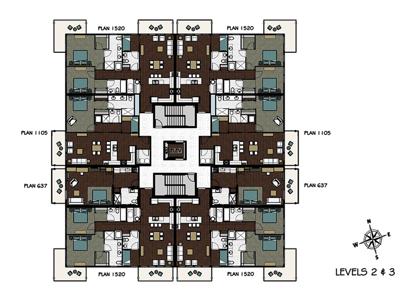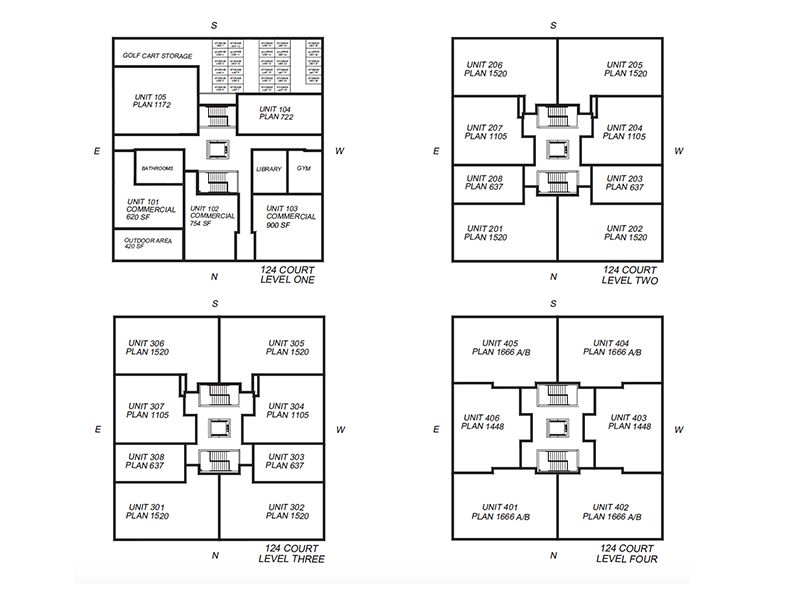 124 COURT offers unique residential floor plans including: studio, 1, 2, and 3-bedroom condominiums ranging from 547 to 1,452 square feet, plus 3 unique commercial units.